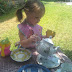 Fabric: Cream silk taffeta and silk taffeta in cool colors - blues, purples, and green. Some black, as well, for good measure.